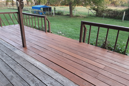 I like that the newer replacement boards are not as obvious now that the stain is applied. And yes, you do see a rotting board in the image. Nothing is ever completely perfect. |