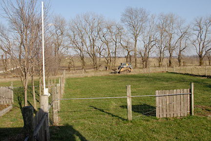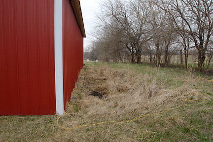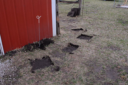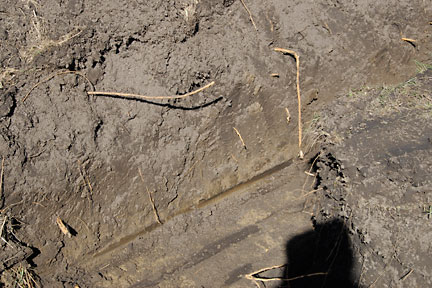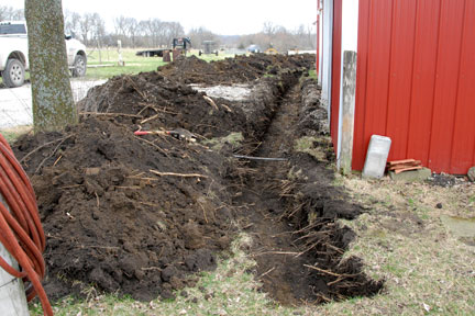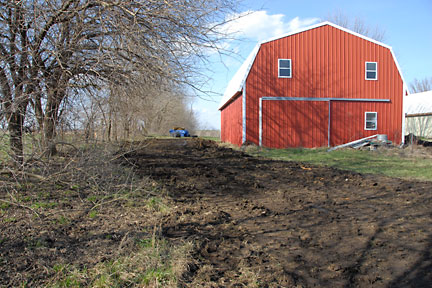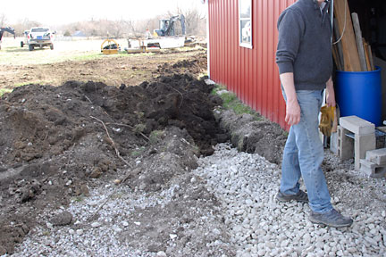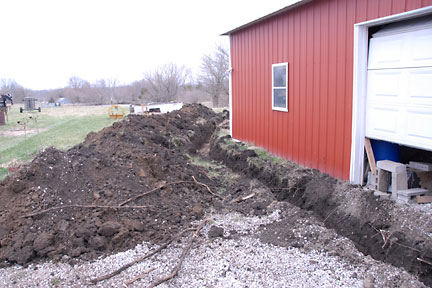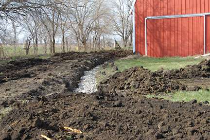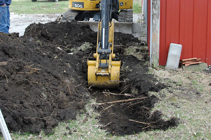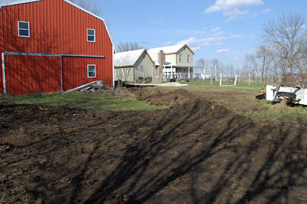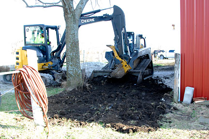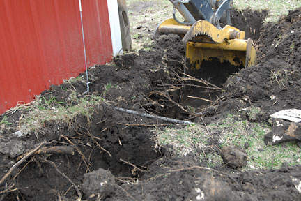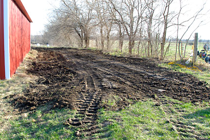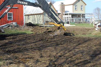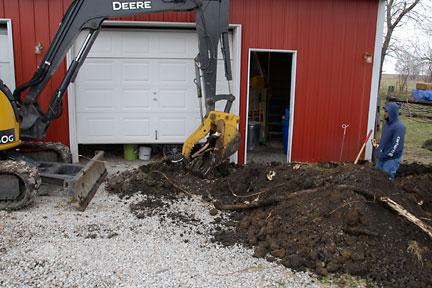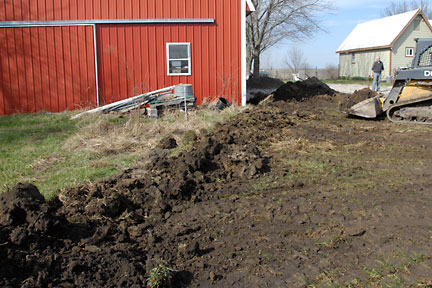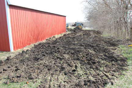 |  | From the north looking at the west side. Wow that is A LOT of soil! Those orange roots come from the Osage Orange trees in our fence line. See how the hubby moved the electric cord out of the way. |