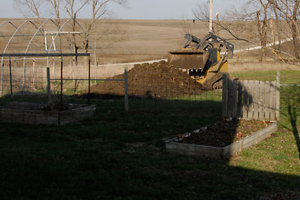 |  | The put it in a pile by the ShelterLogic so it would be close enough to move into the garden area but out of the way at the same time. This is probably three (3) loads. |