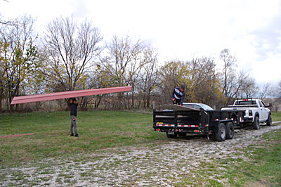 |  | Because the crew did clean up as they went, there was very little left to do once everyone was off the roof. All the metal panels, whether the old ones or the wrong color new ones, were loaded onto the trailer to be recycled or used elsewhere. Magnets were used multiple times to find any screws that made their way to the ground. Trash was collected and taken with them. |