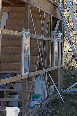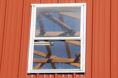 |  | The photo below is to show how much the red color of the south wall had faded. We are very grateful that we did not have to replace the south wall and because of the white trim, the faded walls are not obvious compared to the new wall on the north. |