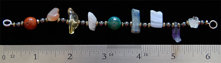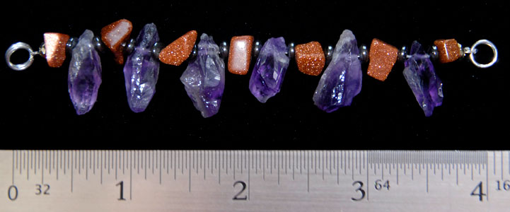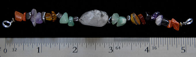 Stones include: Tourmalinated Quartz, Hematite, Aventurine, Tigers Eye, Amethyst, Goldstone and Pyrite.