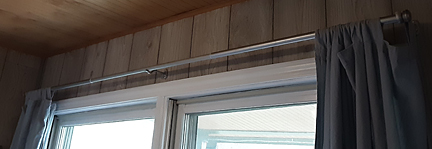 Normally, I wouldn't bother to write up a page about changing the curtain rods in the house. After all, there is little in the way of going eco-friendly when it comes to curtain rods. Unless, of course, you adopt the "found object" aspect and use old fishing rods, old broom handles, or some other long thin thing that you can hang cloth from.