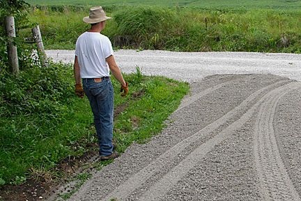 |  | The hubby is walking along where the drainage tube goes to the culvert at the road. I'm not sure why the gravel we got is gray and the road gravel is white. I suppose that it is different stone and you have to know to specify white as opposed to gray gravel. It didn't really matter to us... well, not TOO much. |
