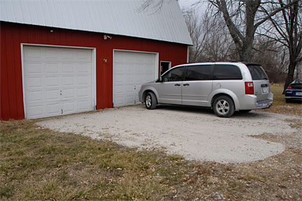 |  | And here is the top dressed area in front of the garage after I compressed the gravel with the Smart Car. The hubby recently told me that he too did some driving around the new gravel in the Van. I guess he wanted to share in the fun, LOL. |