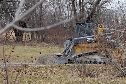 |  | As you can see from this and the last image, he worked in both directions removing small amounts at a time. On the road beyond him is the pickup truck and trailer used to haul the bobcat. |