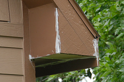 | All that is left to do on this repair is paint it. Of course, paint and caulk can only do so much to keep the water out, but we do what we can with what we have. I would love to do a major design change to the rooflines so the house has a more "Craftsman" look to it. Heavy sigh. |