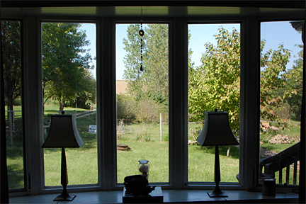 |  | The mechanisms were pretty straight-forward and he was able to replace the moving parts without having to replace the interior covers (which means he didn't have to pull out the stops on either of the moving windows). The window on the right end had always been really difficult to open (probably the reason the mechanism got stripped) and Robie spent some time  getting that window adjusted so that it opened smoothly (not part of the estimate, but he didn't charge us more -- very nice). The photo at left shows the finished window. It is so nice to not be distracted by the window when I'm trying to see the view. Be forewarned, the cost to repair that window with mechanisms was in the $500 range. Worth every penny. |  |